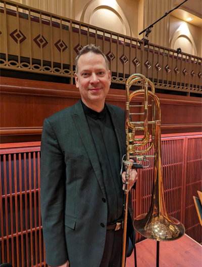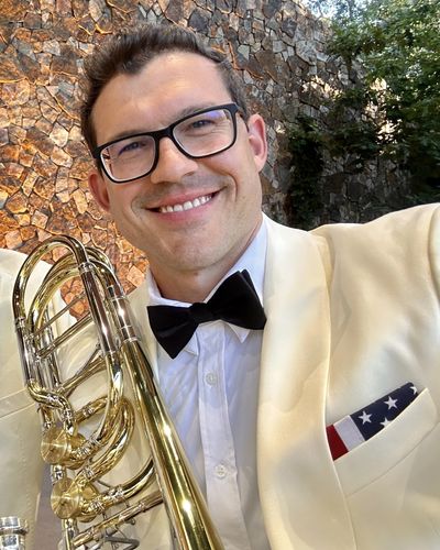 Previously, he served as a bass trombonist in the “President’s Own” United States Marine Band in Washington, D.C., where duties included performances at the White House, Pentagon, Arlington National Cemetery, as well as other prominent venues in and around D.C.